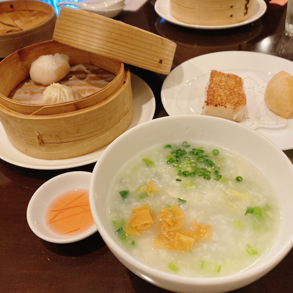 メインのおかゆは優しいお出汁が体に染み渡り、つゆそばは具だくさんで大満足の食べ応え!🍜 最後はデザートとコーヒーで、至福のひとときを過ごせました☕️🍑