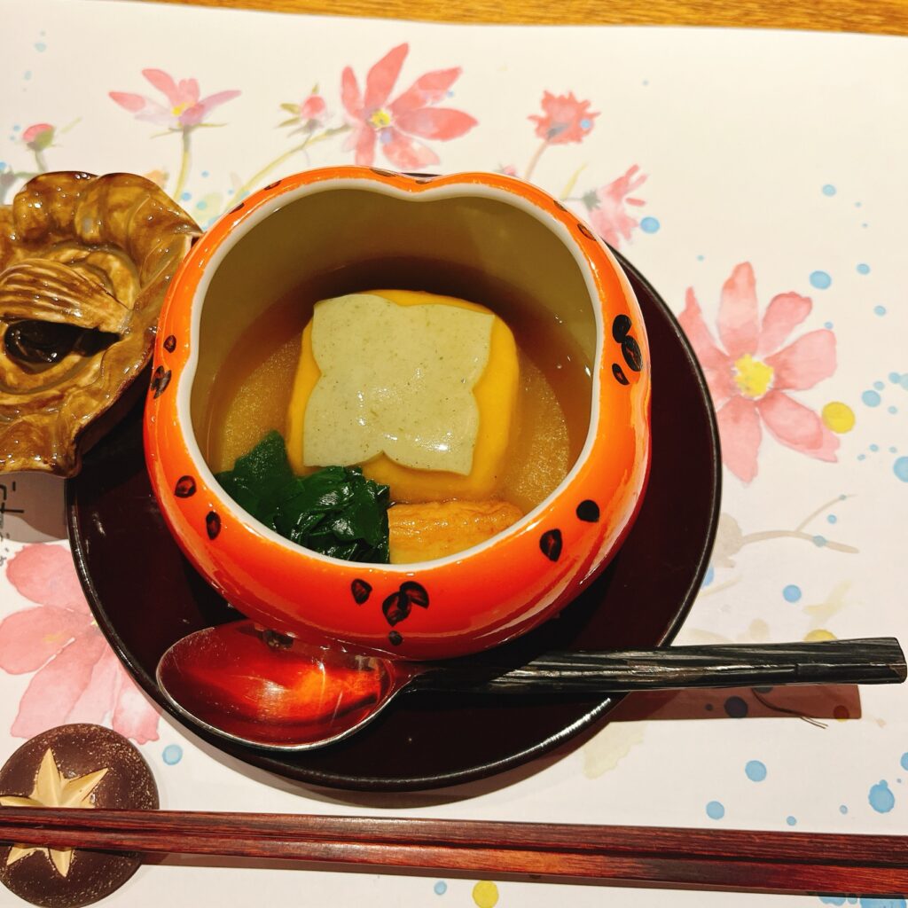 そして、「柿に見立てた南京ムース」です。本物そっくりの柿の器盛られた料理に、義母も大変喜んでいました👵🧡